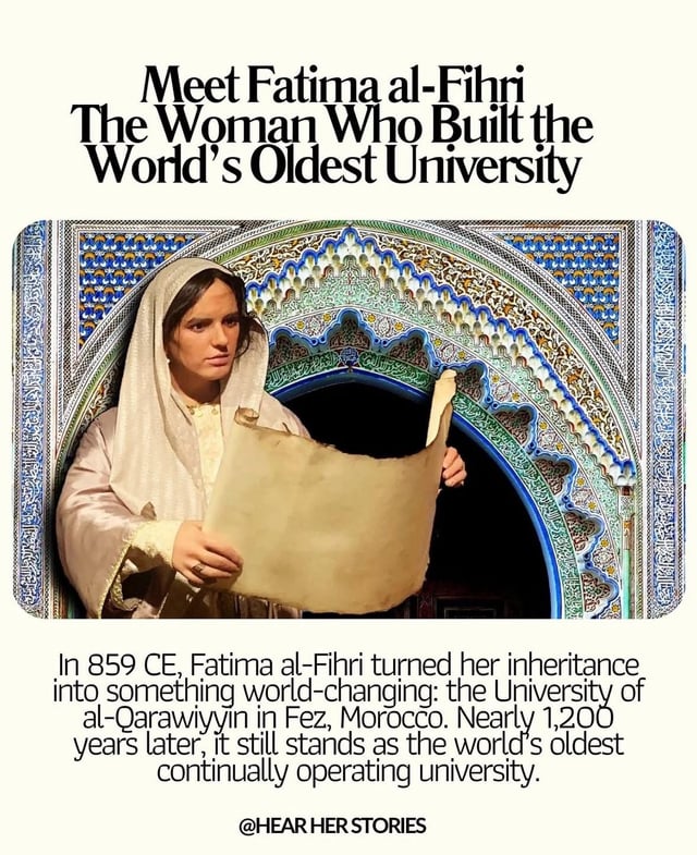 That is me trying to hold back that, upon research (reading the Wikipedia page), I found out that Fatima al-Fihriya is probably not a real person :(