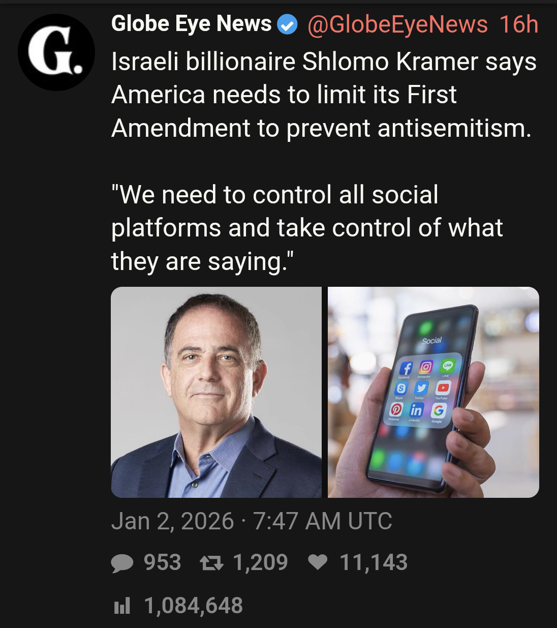 Not Jews but Zionists specifically, including Christian Zionists. Zionists have had siginficant control over US media for a very long time but when you state the obvious people call it the antisemitic trope because they have been conditioned to do so. They were pretty open about why they bought TikTok